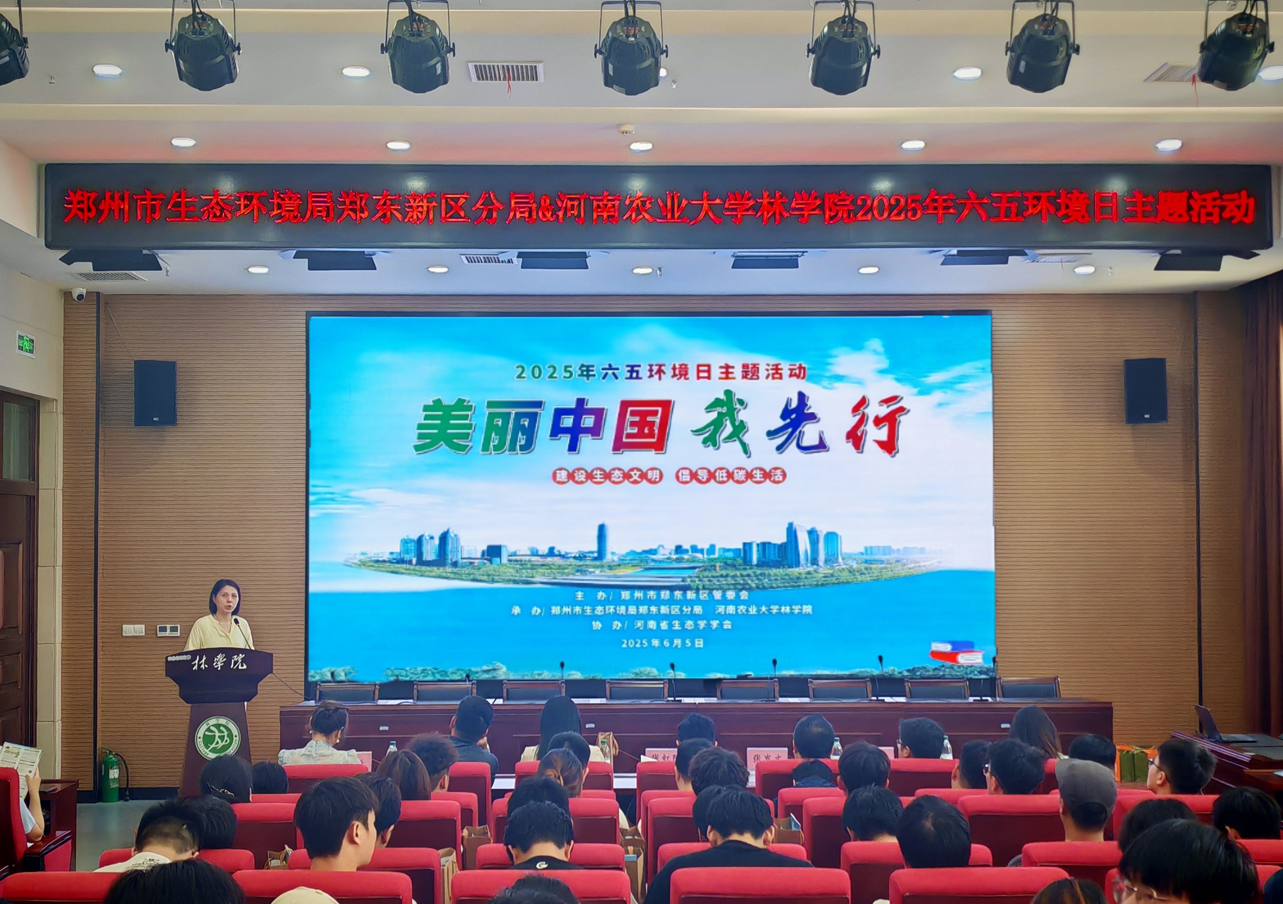 本网讯(通讯员 马蒙恩)6月5日,由郑州市东区管委会主办,av直播 与郑州市生态环境局郑东新区分局承办的“美丽中国我先行”——2025年六五环境日主题活动在龙子湖校区力行楼举行。郑州市生态环境局郑东新区分局局长张红阳、av直播 党委书记化青报、院党委副书记王娟及学院师生代表参加本次活动。