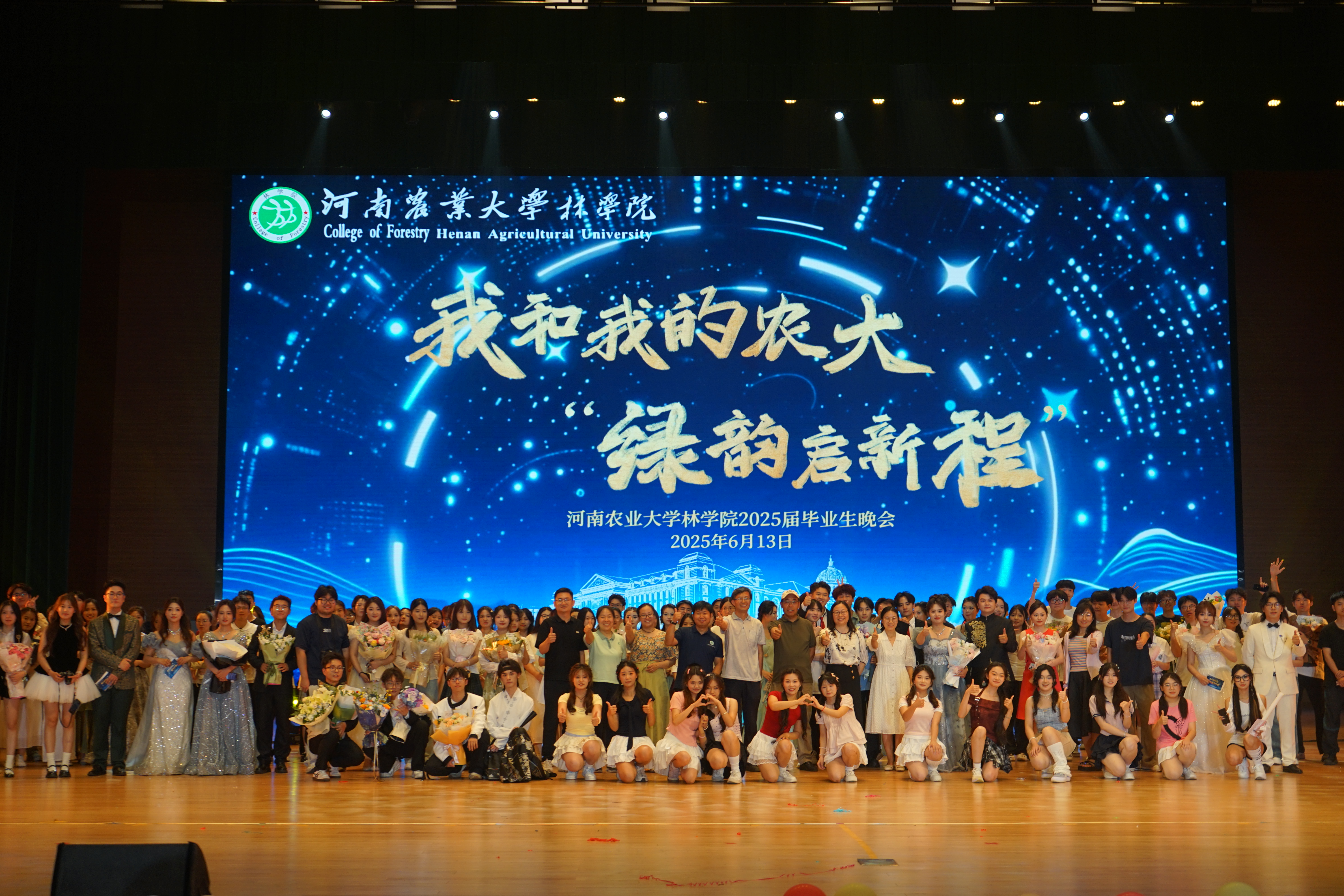 6月13日,av直播 于龙子湖校区英林大讲堂举办“我和我的农大——绿韵启新程”2025届毕业生晚会。院党委书记化青报、院党委副书记王娟、院团委书记田原、院团委老师、学院教师代表以及全体学生共同参加本次晚会。