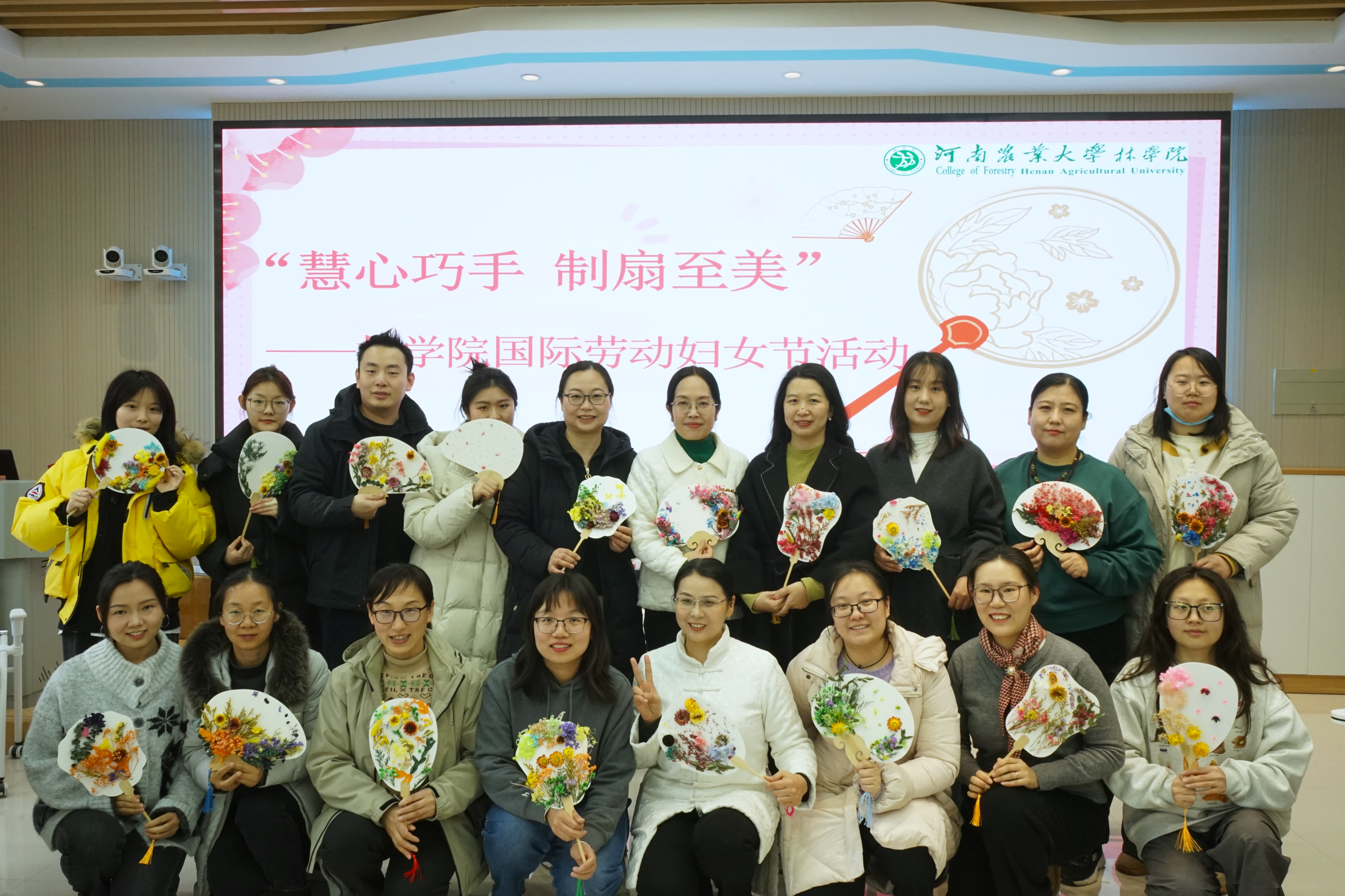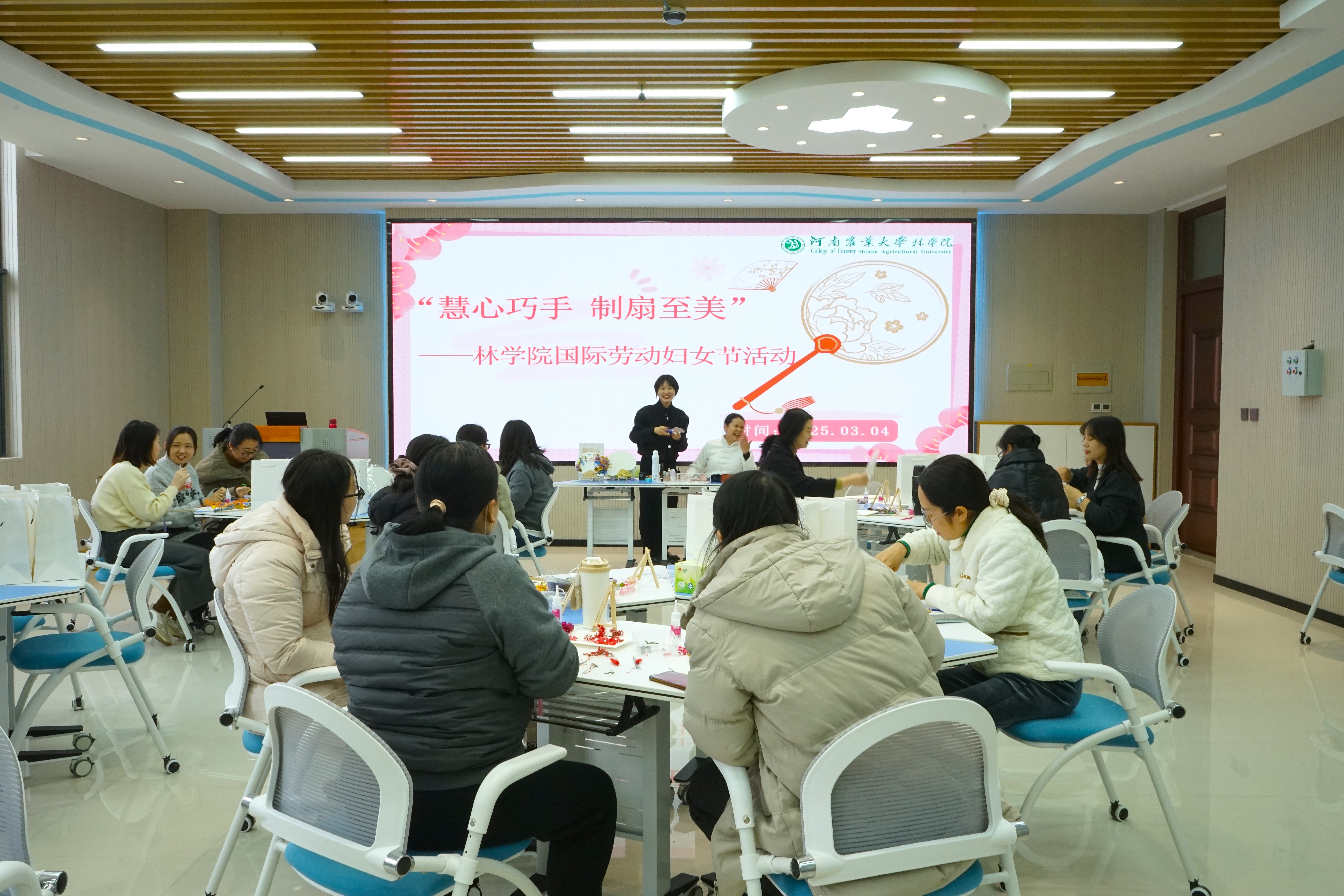 于力行楼南250举办“慧心巧手,制扇至美”国际妇女节活动。活动由周阳老师主持。