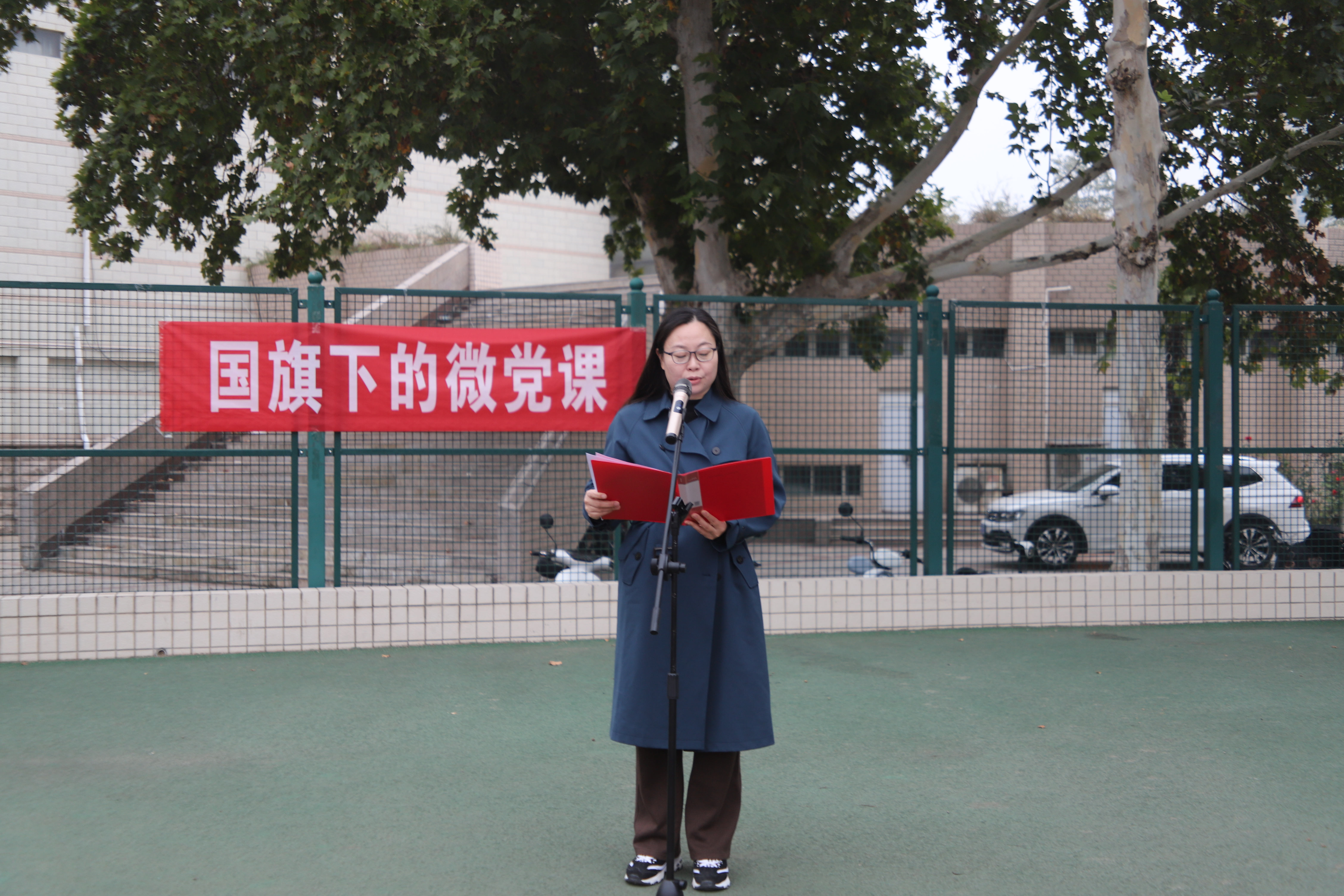 10月28日,av直播 于文化路校区田径场举行“喜迎党代会,国旗映新章”升国旗仪式。院党委副书记王娟,院团委书记田原、院团委老师、教师代表等出席活动。升旗仪式由田原主持。