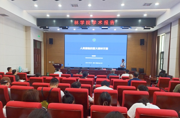 学术报告厅作了题为《人类面临的重大森林灾害》的学术报告。院长范国强及学院相关专业教师和研究生参加了报告会。报告会由范国强主持。