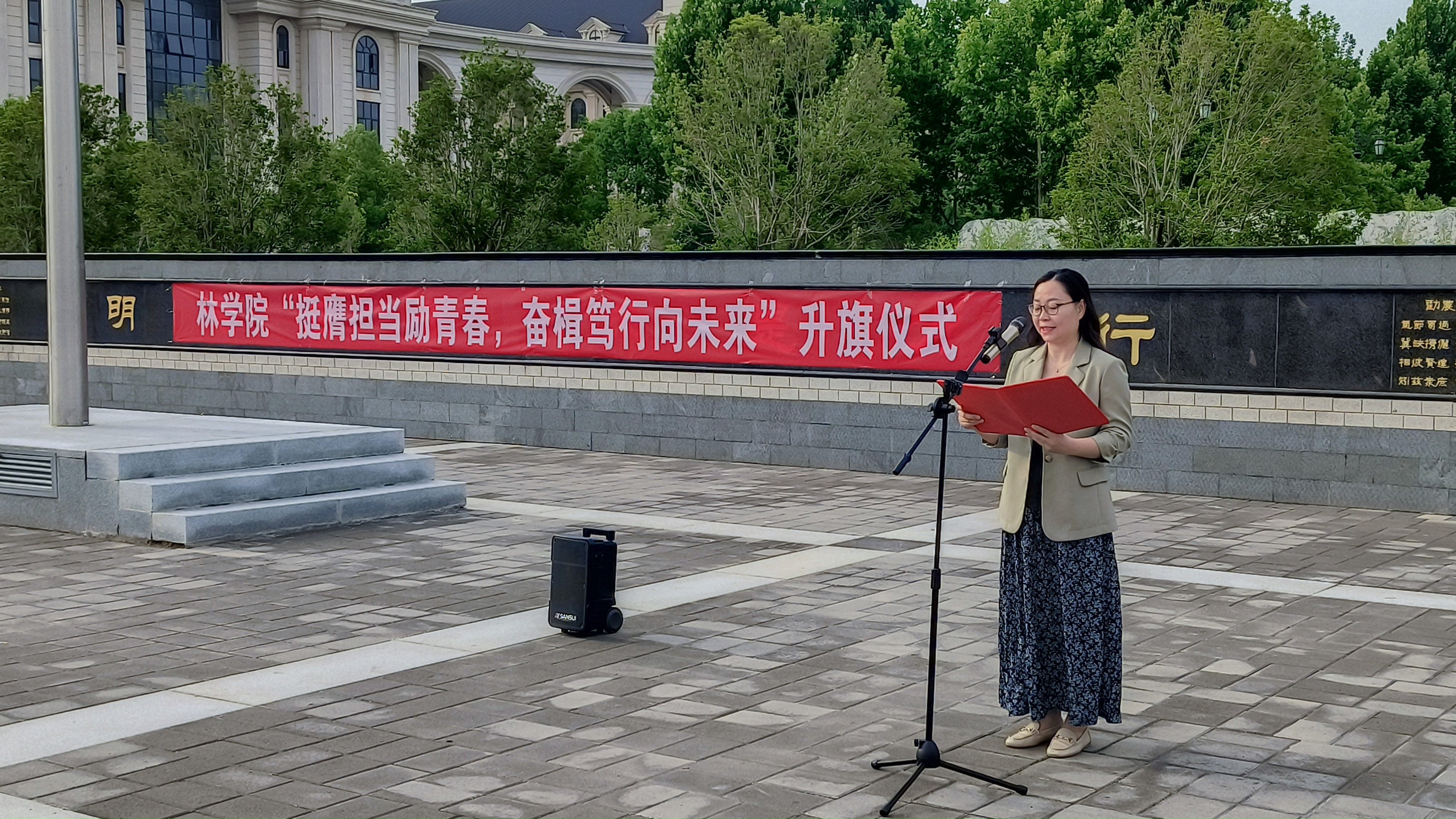 在国旗下,院党委书记化青报深切寄语青年,要奋不顾身、笃行不怠,追求真理、勇攀高峰,在共赴青春之约中尽展“挺膺”之姿色,并向全体学生提出三点希望,一是要以“不忘初心,牢记使命”的“挺膺”之姿,坚定理想信念,立“弘农爱国”之志;二是要以“脚踏实地,实事求是”的“挺膺”之姿,激扬奋进斗志,传“厚生丰民”之情;三是以“勇于探索、开拓进取”的“挺膺”之姿,培育创新思维,育“强农兴农”之才。