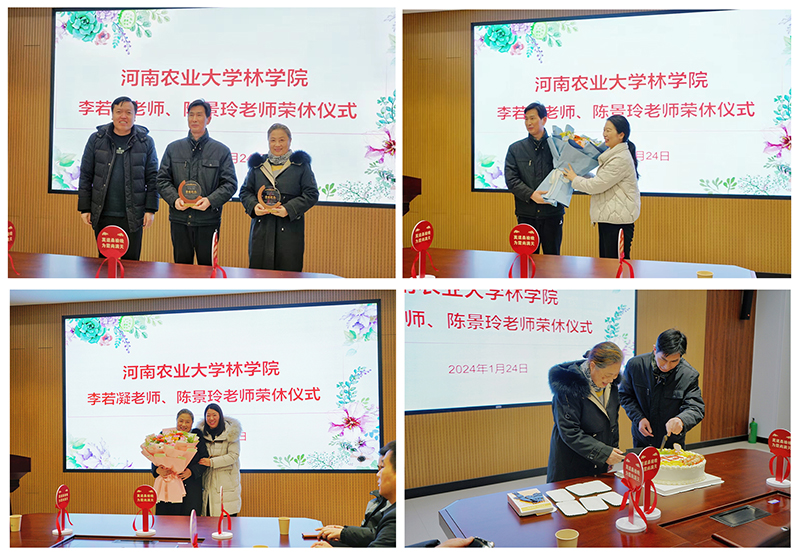 旅管系李若凝老师、生态系陈景玲老师荣休仪式在力行楼2-南-231会议室举行,院领导班子、各系教师及学生代表参加。仪式由院党委副书记王娟主持。
