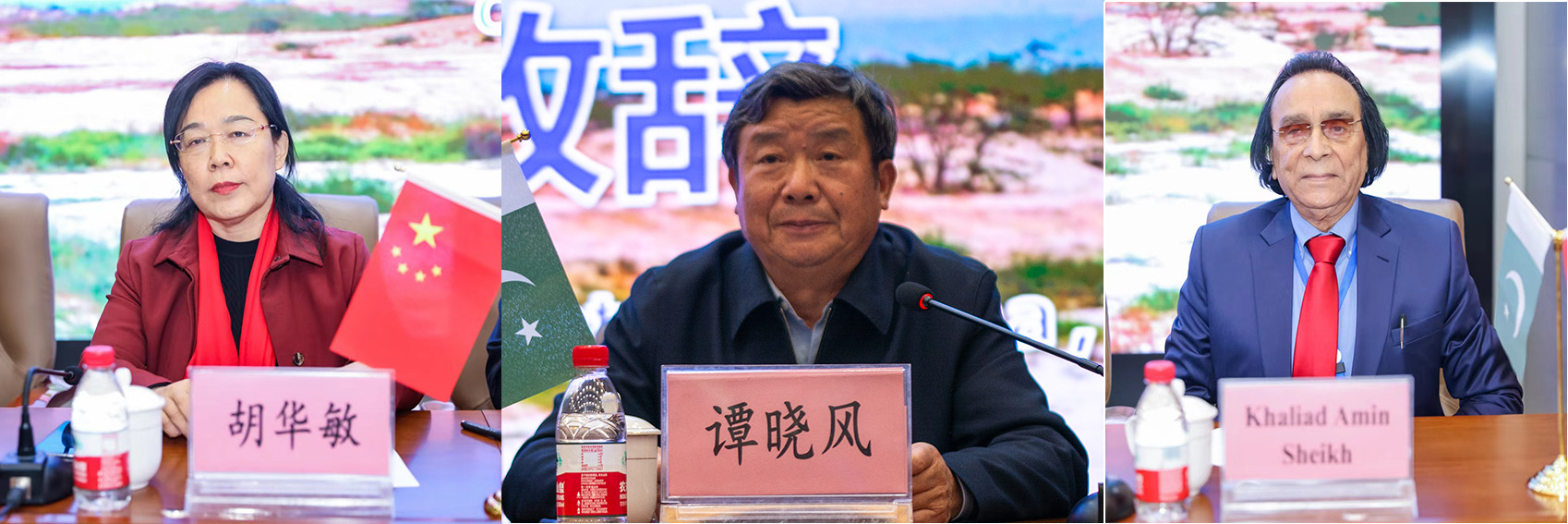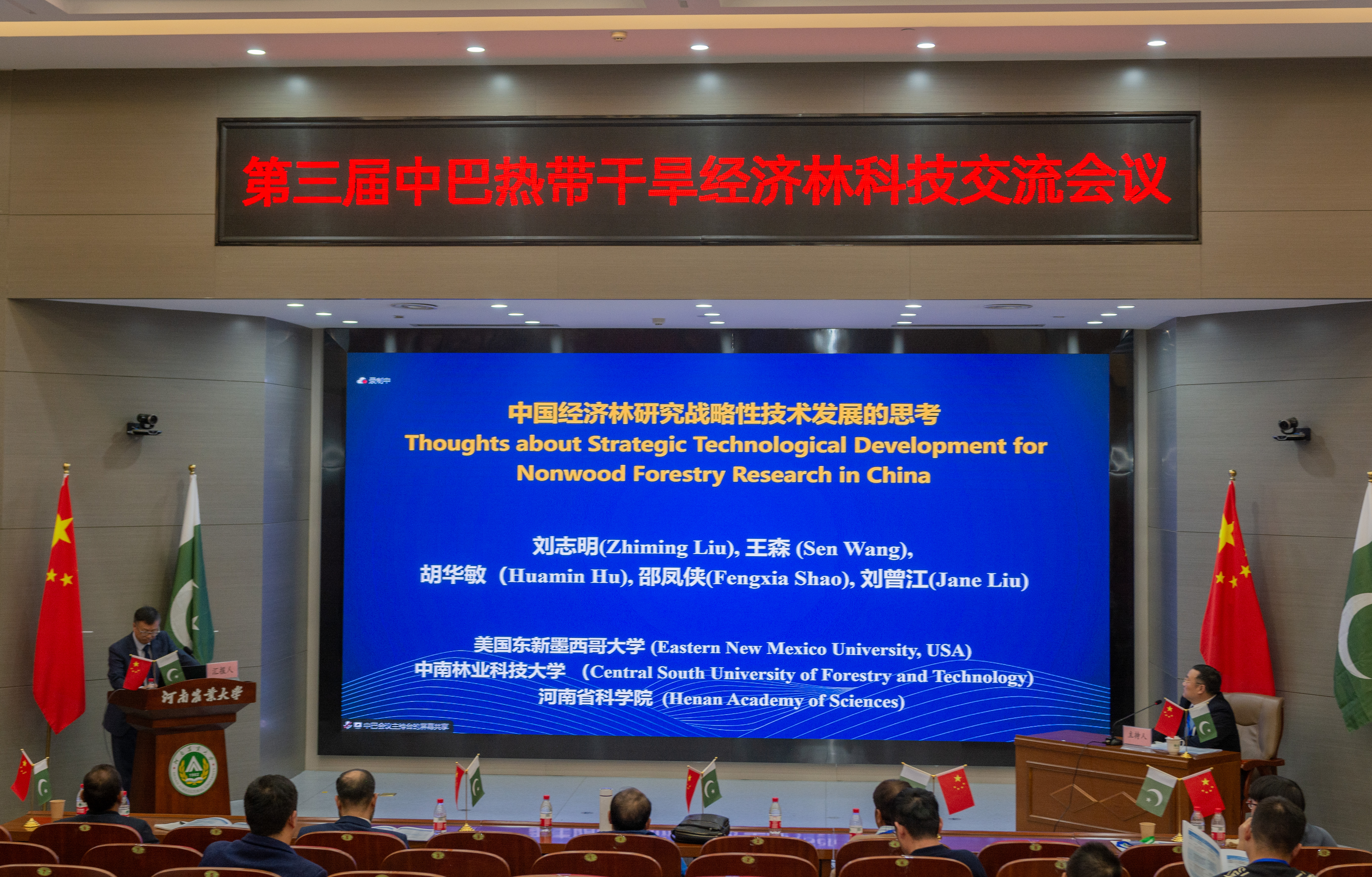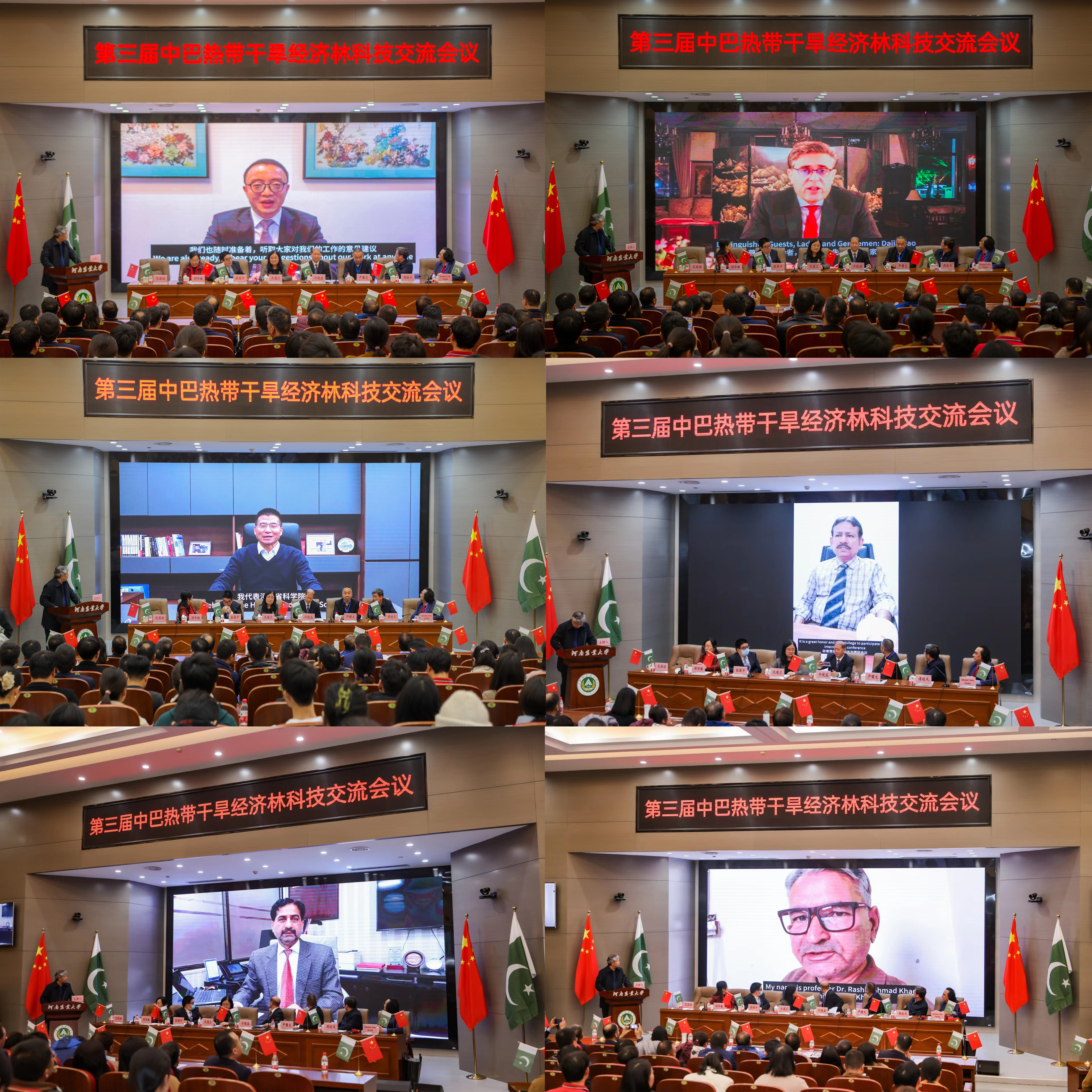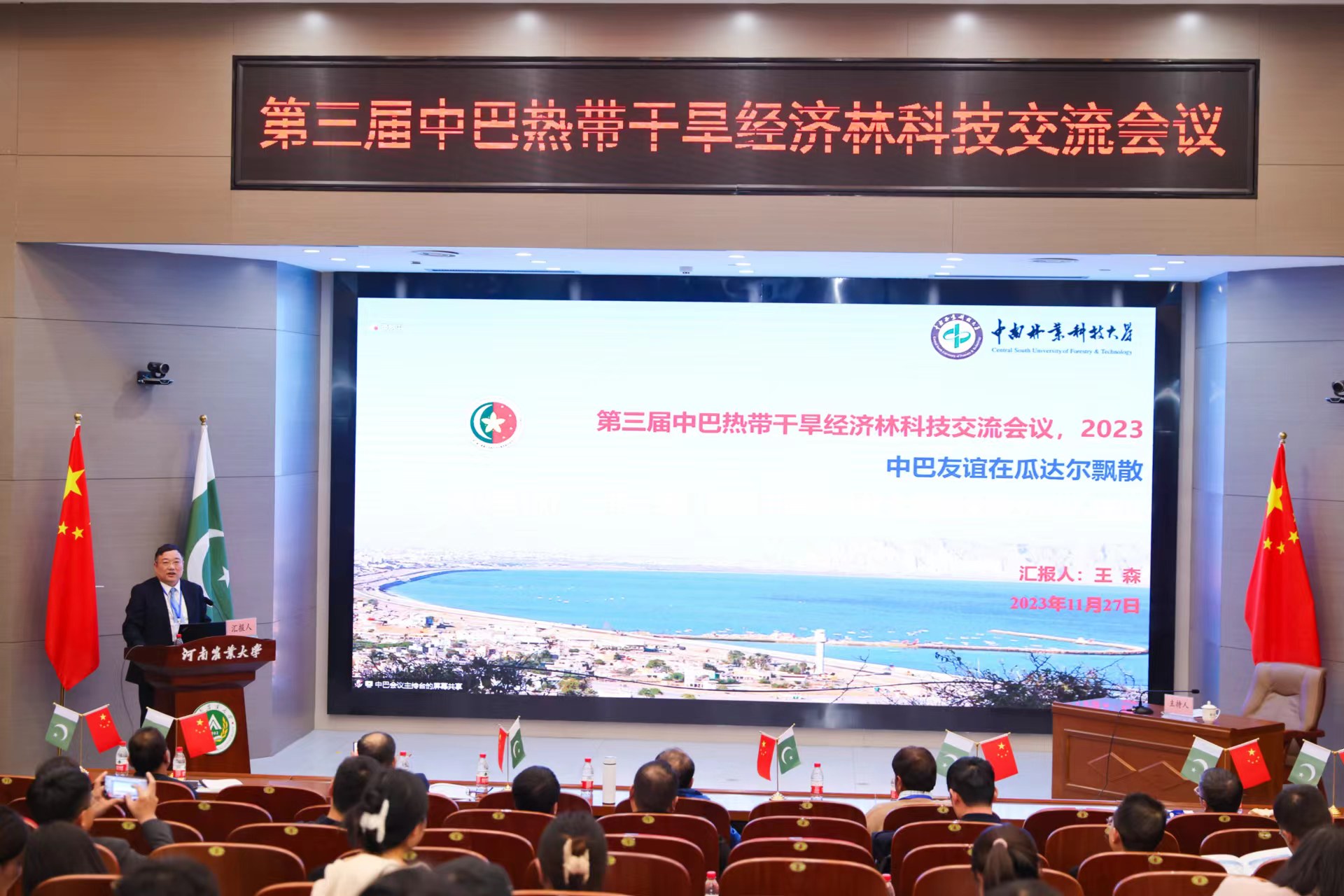 2023年11月27日上午,由中国林学会、中南林业科技大学主办,av直播 、河南省林学会、中国林学会经济林分会、中国海外港口控股有限公司、育林控股有限公司、卡拉奇大学、费萨拉巴德农业大学、印度河大学、瓜达尔大学、“一带一路”干旱经济林国家创新联盟、湖南省“一带一路”热带干旱经济林国际联合研究中心承办的第三届中巴热带干旱经济林科技交流会议,以线上线下结合的方式在av直播 和巴基斯坦瓜达尔自由区同时开幕。本次会议以“木本药材与活性物质”为主题。来自av直播 和中国林学会、中南林业科技大学、中国林科院经济林中心和亚林中心、巴基斯坦印度河大学、卡拉奇大学、瓜达尔大学、费萨拉巴德农业大学等单位的领导嘉宾、专家学者和企业家等200余人参加会议。校长介晓磊出席会议并致辞。av直播 院长范国强主持会议。