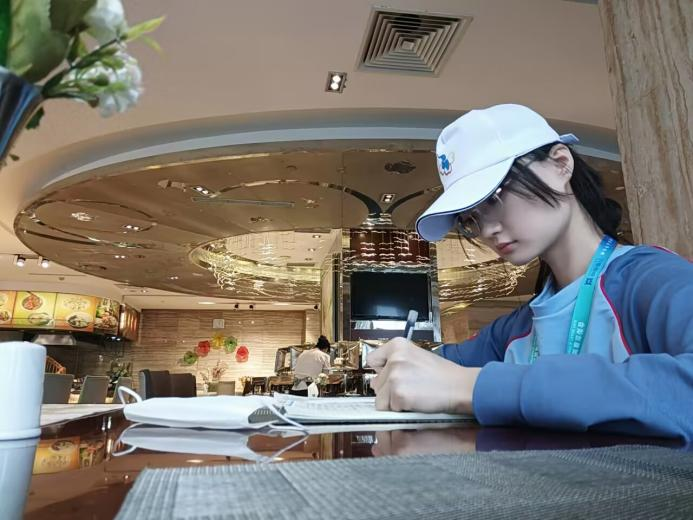 av直播 的韩雯霜主要负责酒店会务保障工作,既要协助指导老师通知各个酒店的客人确认酒店免单人数,又要引导嘉宾办理入住工作,统计嘉宾房客信息,将礼品发放至每位嘉宾,当参会嘉宾遇到问题时,她总能联系协助帮助解决。