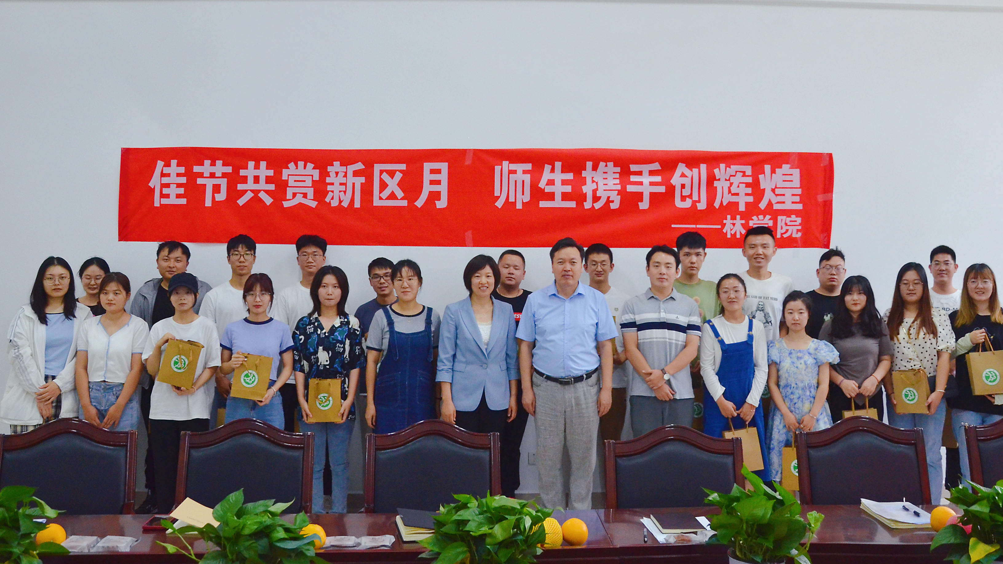 会后,学院领导老师为同学们送上节日礼物并合影留念。