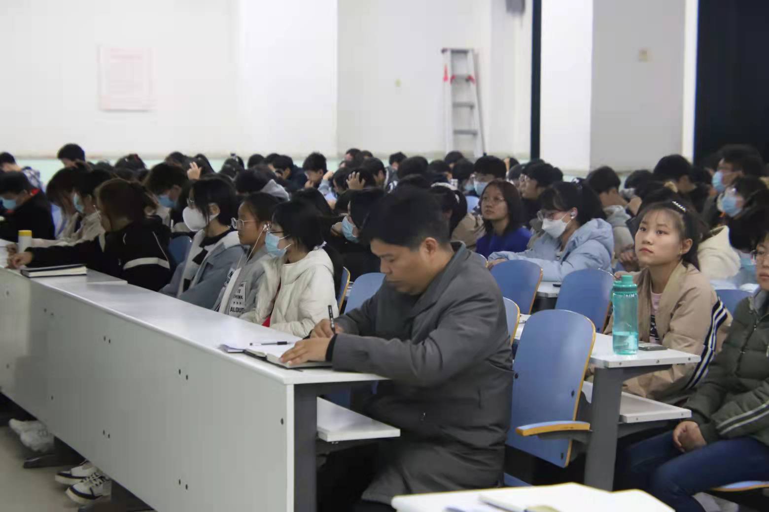 于文化路校区工程楼101教室召开党的十九届六中全会精神宣讲会。院党委书记化青报,院党委副书记李兴旺,院团委老师李光辉出席此次宣讲会,2021级全体学生参加此次宣讲会。宣讲会由化青报担任主讲。