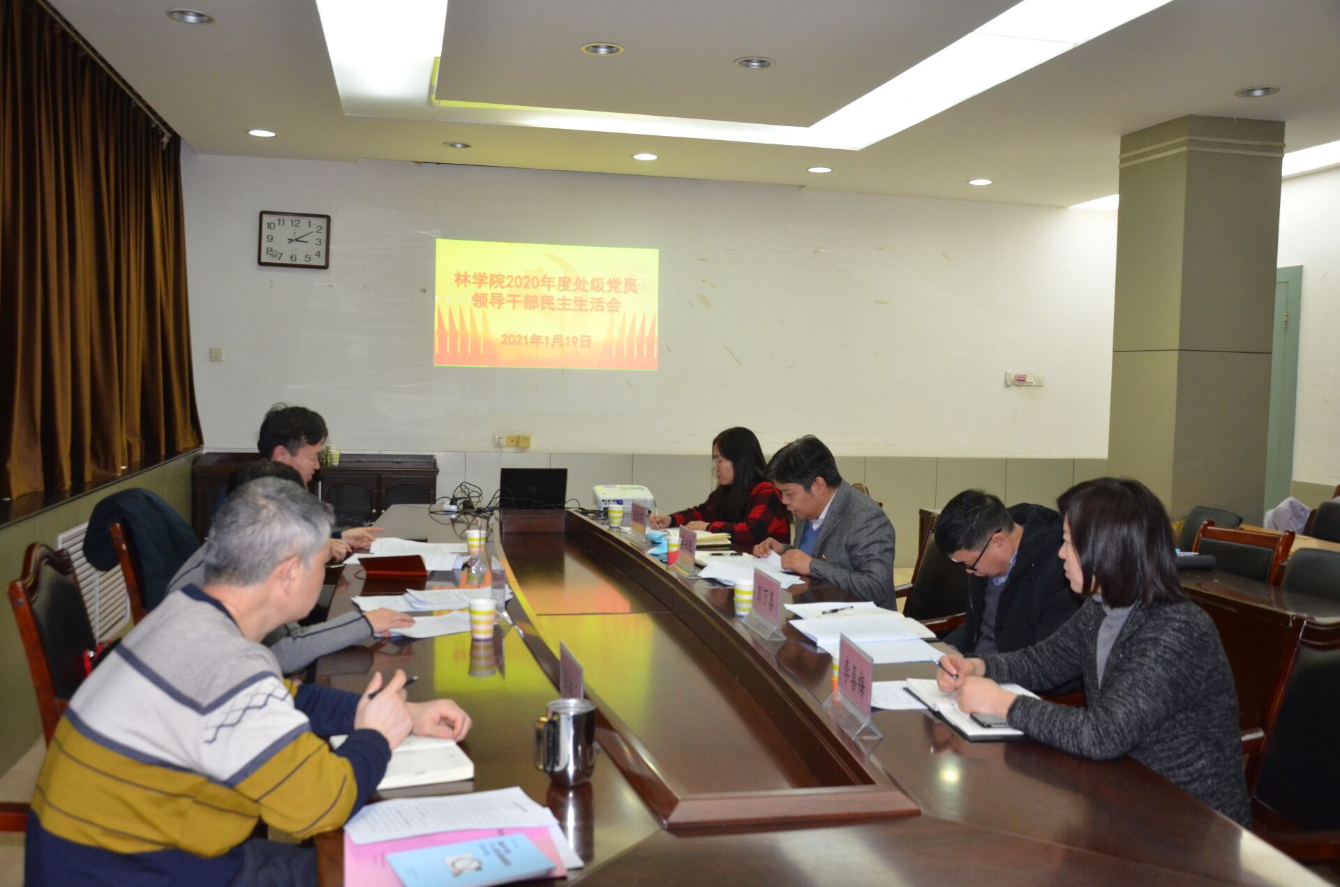 1月19日,av直播 在2号楼二楼会议室召开2020年度处级党员领导干部民主生活会。学院全体处级党员领导干部参加民主生活会,校党委宣传部部长王红艳出席会议,会议由院党委书记化青报主持。