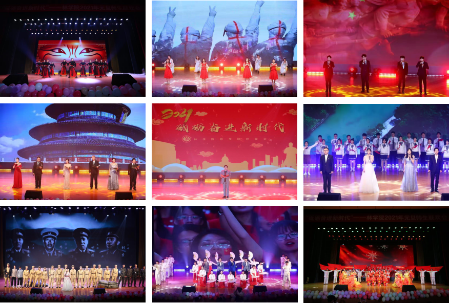 物换星移辞旧岁,林院新春共筑梦。12月22日,“砥砺奋进新时代”av直播 2021年元旦师生联欢晚会于文化路校区大礼堂隆重举行。院党委书记化青报,院正处级组织员李培玉,校党委办公室副主任张保磊,院党委副书记李兴旺,副院长彭万喜,副院长张学芳,副院长李喜梅出席此次晚会。全院师生共聚一堂,观看了这场视觉盛宴。