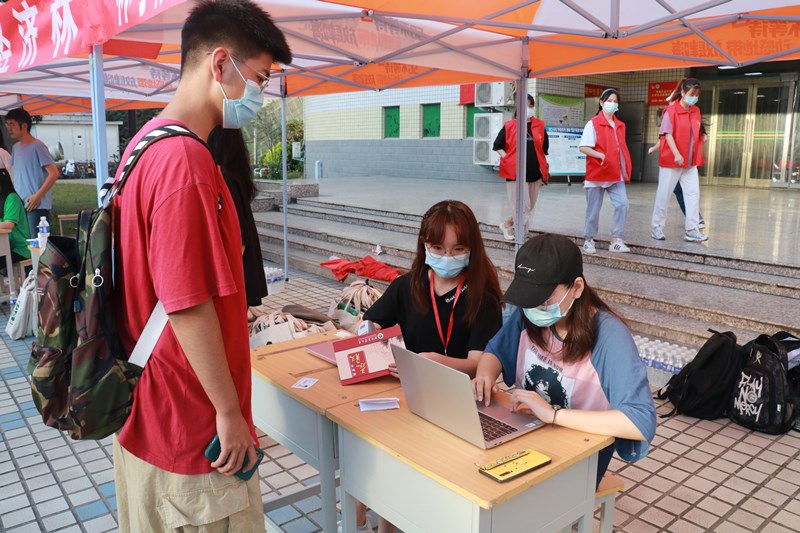 各专业报到情况,了解新生动态,与新同学进行了亲切友好的交流并送上“防疫爱心包”。疫情防控常态化形势下,学院切实落实学校新生入学工作方案,实行分区报到,设置志愿服务点,新生严格按照防疫要求进行体温复检、信息核验、签到注册,切实保障学生的健康安全。学院通过入学教育多元化、报到防控严格化、绿色通道简单化、志愿服务暖心化等举措,推动新生入学报到各项工作有条不紊地进行。