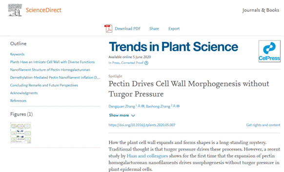 张党权教授在国际著名综述期刊Trends in Plant Science(植物科学趋势)在线发表高水平焦点论文《果胶无膨压促进细胞壁形态发生》(Pectin Drives Cell Wall Morphogenesis without Turgor Pressure)。Trends in Plant Science由Cell出版集团主办,是有重要影响力的学术期刊。av直播