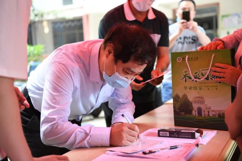 返校接待处亲切慰问毕业生,为毕业生写下深情寄语并合影留念,受到毕业生的热烈欢迎。院党委书记郑东方走进宿舍慰问毕业生,对他们表示衷心的祝贺,希望大家在返程的路上做好安全防范,在疫情防控常态化形势下主动承担新时代赋予的重任,并祝福大家前程似锦、生活美满,母校永远是大家温暖的港湾!班主任和党员志愿者老师积极帮助学生收拾、打包、搬运、邮寄物品,并详细询问学生近期学习生活情况和就业状态,及时为同学们排忧解惑,他们将对学生四个多月的思念和毕业的祝福转化为实际行动,构筑起呵护学生的爱心长廊,为毕业生们提供最便捷、最温暖的服务。