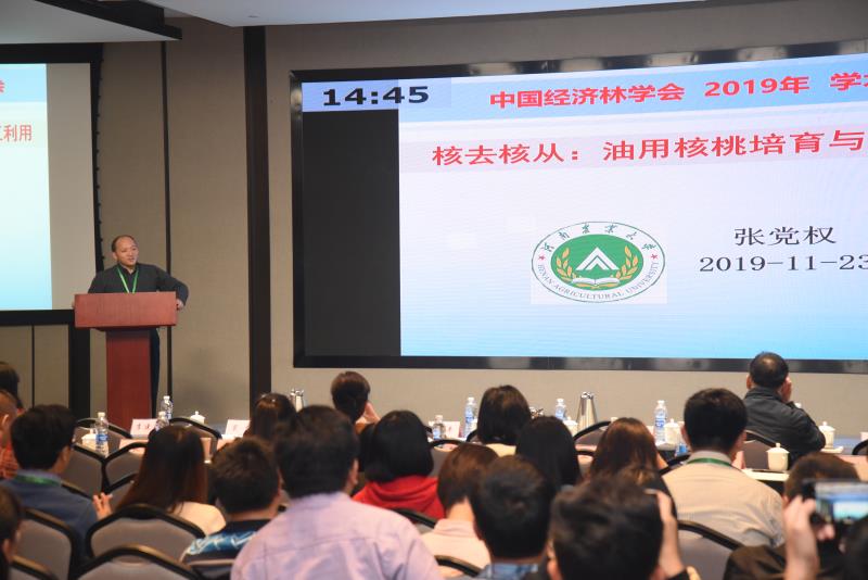 11月23日至24日,中国林学会经济林分会2019年学术年会在郑州召开。会议由中国林学会经济林分会主办,国家林业和草原局泡桐研究开发中心承办,av直播 协办。中国林学会副秘书长沈瑾兰、中国林科院副院长孟平、中国林学会经济林分会理事长谭晓风、国家林业和草原局林改司调研员高均凯等出席会议。来自全国各省的259名代表参加了会议。 大会共组织45场学术报告,代表们结合经济林的科研进展和生产实际,紧密围绕大会主题“经济林产业高质量发展”的热点、难点和重点问题,广泛而深入地开展了学术研讨和经验交流。av直播 3名教师做了主题报告、4名研究生做了“研究生论坛”专题报告,主题报告分别是刘震教授的“山桐子资源开发利用前景”、张党权教授的“核去核从:油用核桃培育与加工利用”、李继东副教授的“基于多组学技术枣疯病发生机理研究”。 经济林是我国林业产业中的重要方向,2017年由张党权教授牵头在av直播 林学一级学科下建设经济林学科方向,并积极申请与建设经济林本科专业,为河南及全国经济林产业发展提供科技和人才支撑。