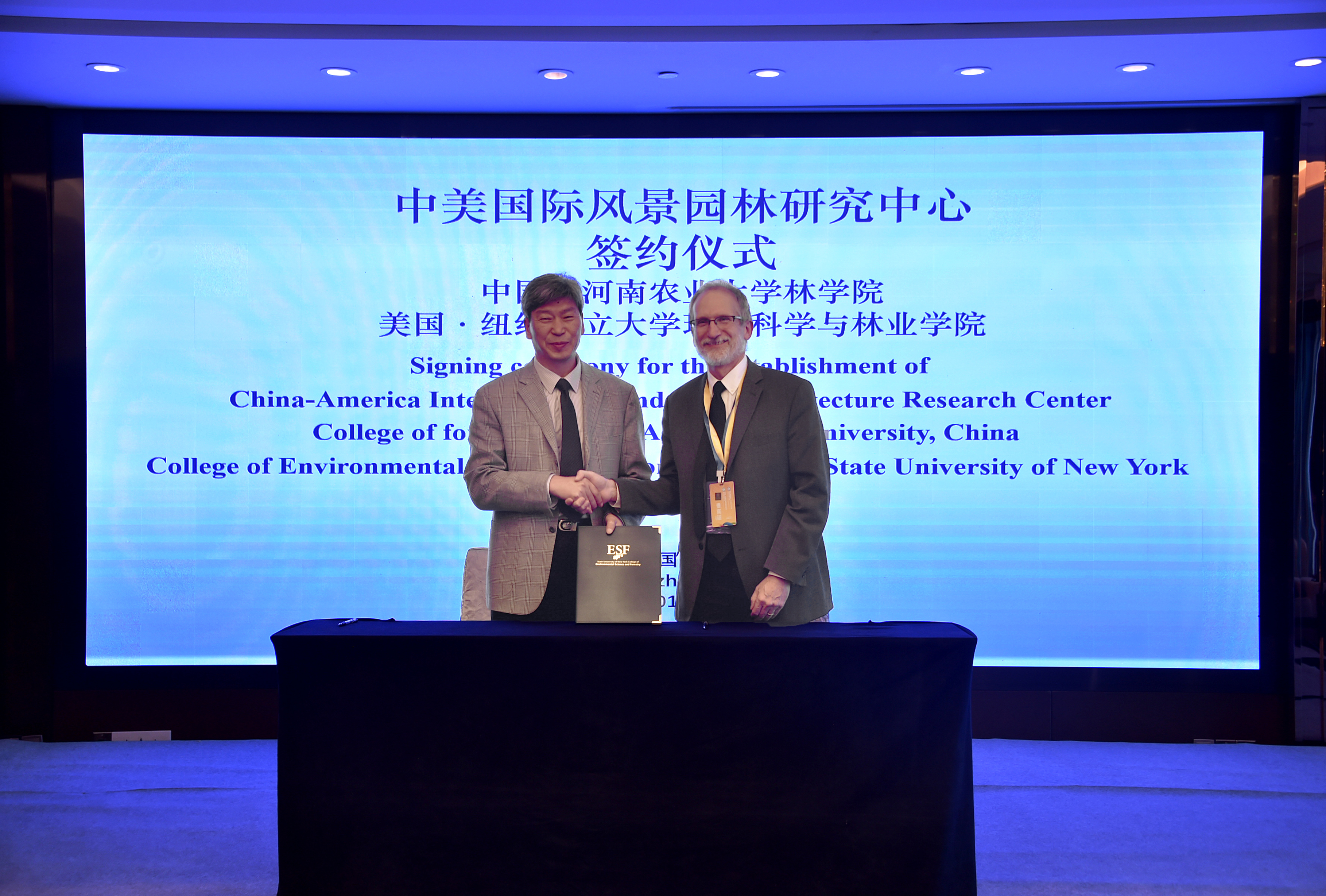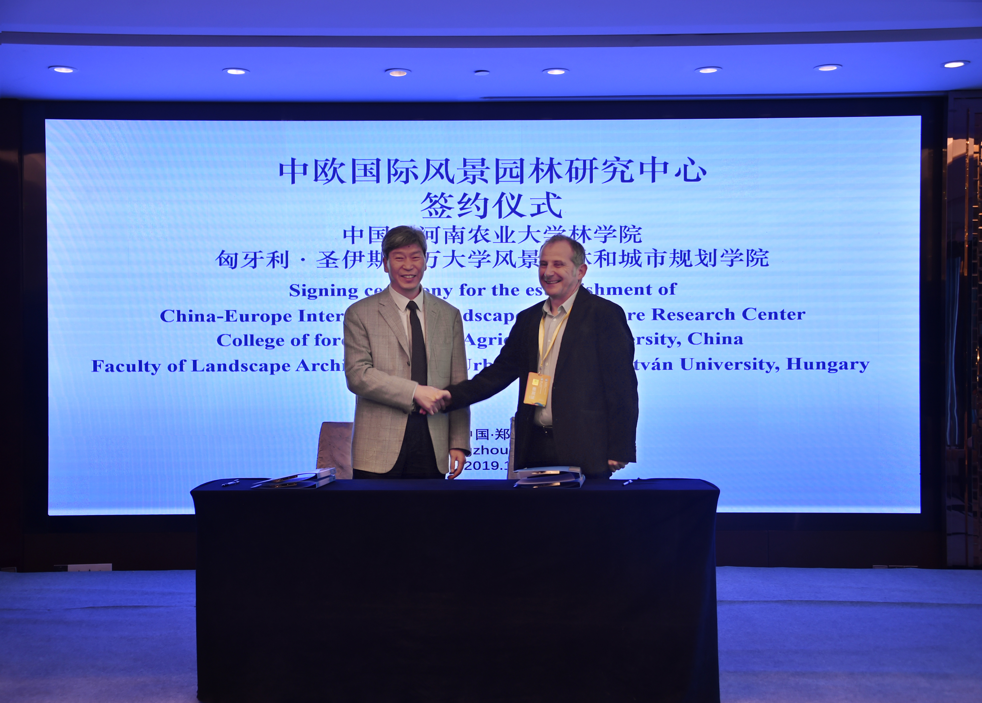 分别与匈牙利圣伊斯特万大学风景园林和城市规划学院、美国纽约州立大学环境科学与林业学院举行了共建“中欧国际风景园林研究中心”、“中美国际风景园林研究中心”签约仪式。