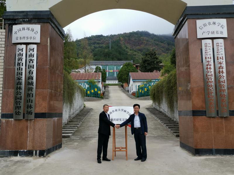 教学科研实习基地”在黄柏山国家森林公园举行挂牌仪式。院党委书记郑东方和商城县黄柏山国家森林公园管理处主任、黄柏山林场场长纪道宝共同为基地揭牌。av直播