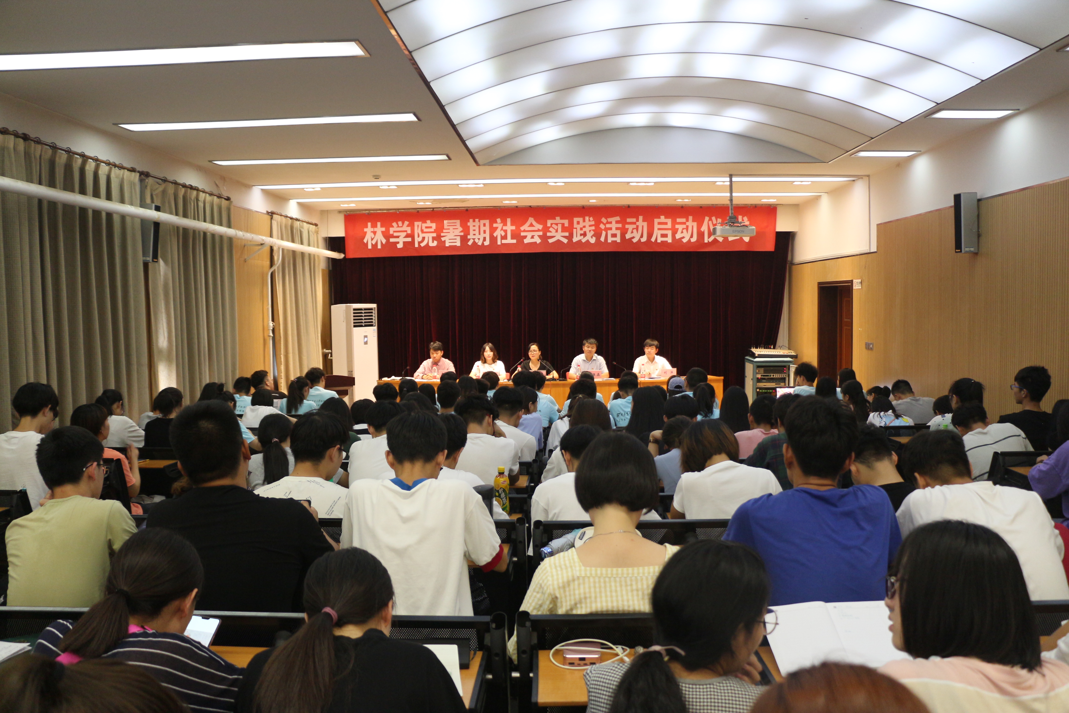 为深入学习习近平总书记系列重要讲话精神和党的十九大精神,贯彻落实习近平总书记在纪念“五四”运动一百周年大会上的讲话精神,6月28日,av直播 于2号楼四楼学术报告厅举办2019年暑期社会实践启动仪式。院党委副书记张华,院团委书记张保磊,院团委老师乔辛悦、刘洋出席了会议,各班班长支书、社会实践团队项目负责人120余人参加了会议。大会由乔辛悦主持。