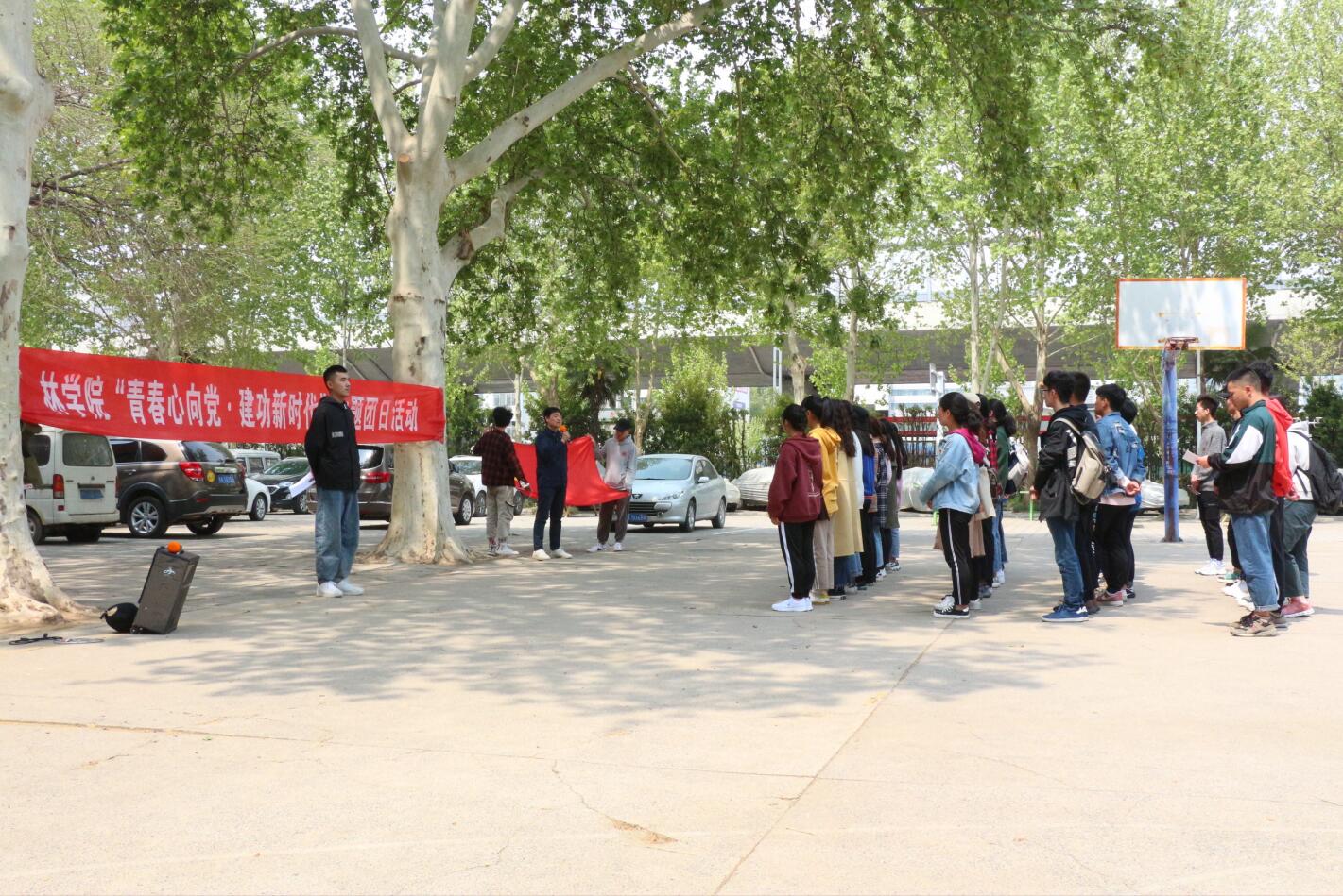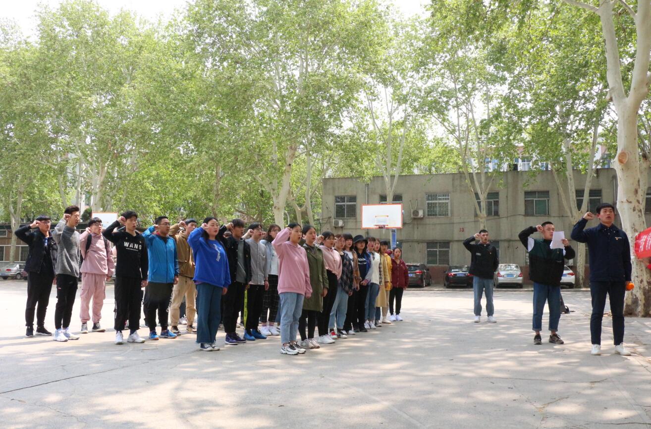 为了庆祝中华人民共和国成立70周年,纪念五四运动100周年,深入学习贯彻习近平总书记新时代中国特色社会主义思想,激励和引领广大青年弘扬爱国主义精神。4月12日,av直播 于文化路校区东篮球场举办2019学年青马班仪式教育活动。院团委老师刘洋及第二期青马班全体学员参加了此次活动。