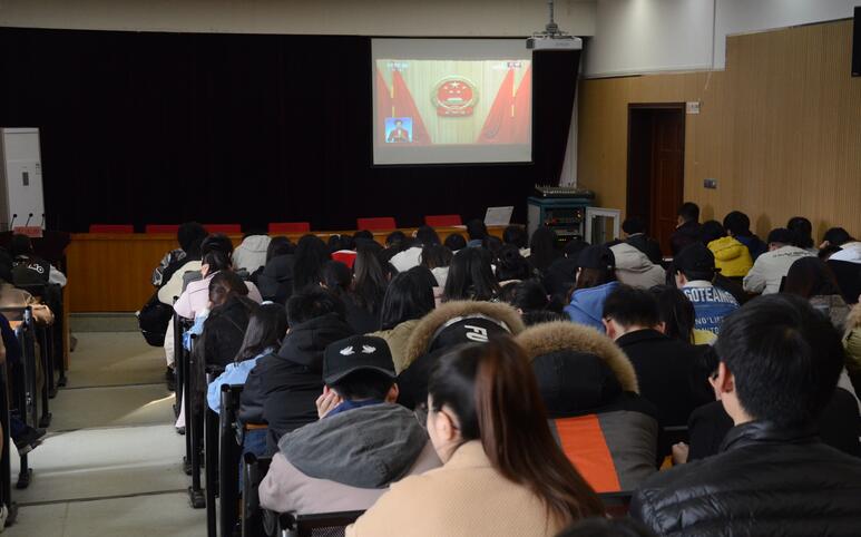 3月5日上午9时,十三届全国人大二次会议在人民大会堂正式开幕,av直播 组织无课的师生在二号楼观看直播,共同学习和探讨“两会”精神。