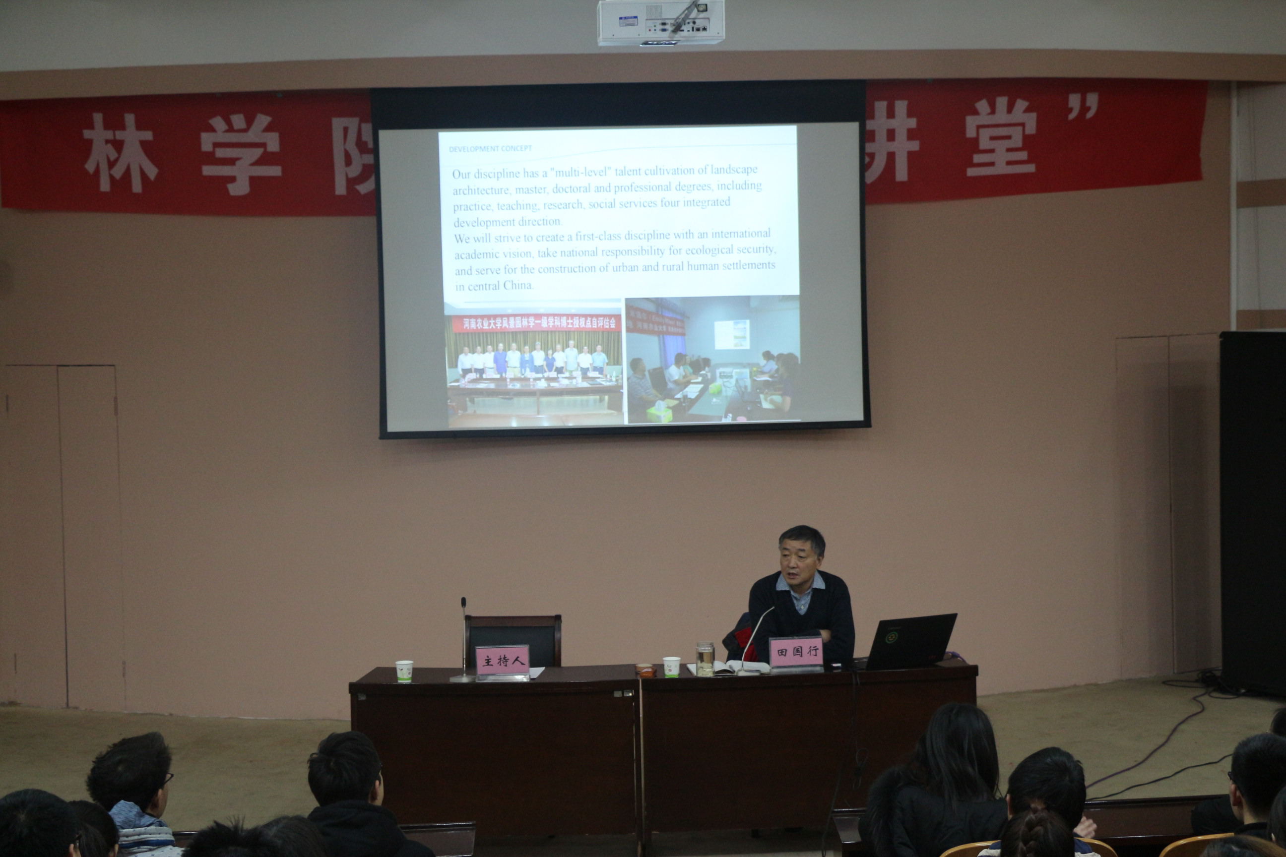 12月26日,园林系教授、博士生导师田国行走进av直播 “教授讲堂”,于校300人报告厅为相关专业学生做了专题报告。报告会由院团委老师田原主持。