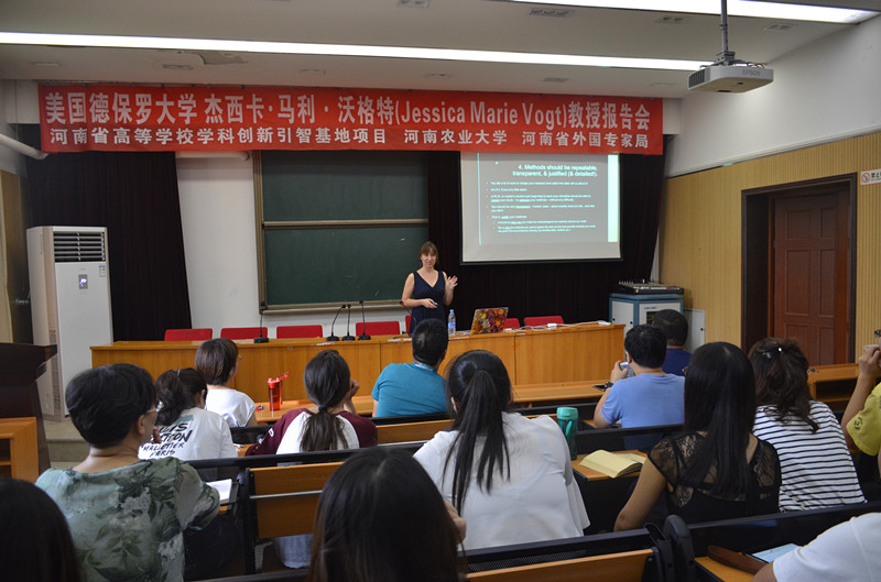 田国行教授邀请,河南省“城乡绿地资源调控与景观生态设计”学科创新引智基地合作专家、美国德保罗大学杰西卡·马利·沃格特(Jessica Marie Vogt)教授莅临av直播