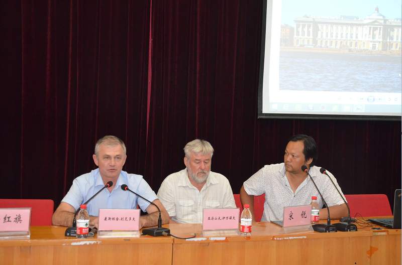 师生做了题为“当代列宾美术学院”的学术报告。报告会由艺术系主任杨红旗主持。