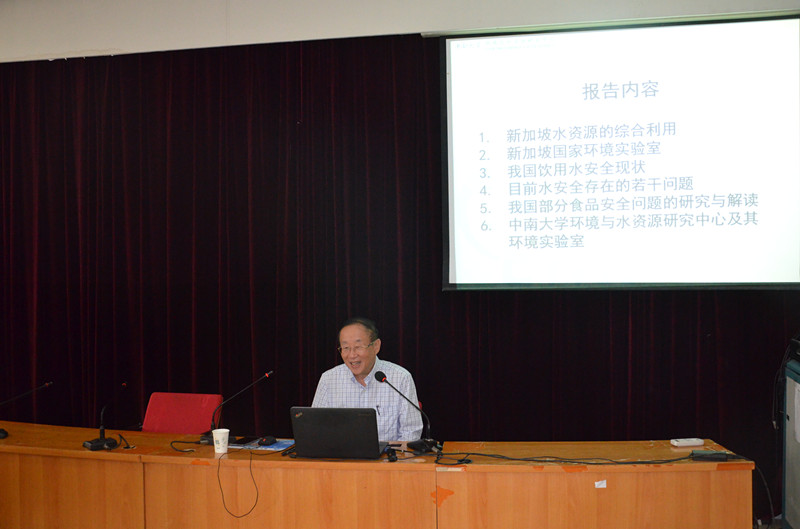 9月15日上午,中组部“千人计划”国家特聘专家、中南大学环境与水资源研究中心主任杨兆光教授应av直播 邀请来到av直播 ,为av直播 师生做了题为 “环境污染物对饮用水和食品安全的威胁及应对措施”的前沿学术讲座,讲座由副院长刘震主持。环境系教师和研究生聆听了讲座。