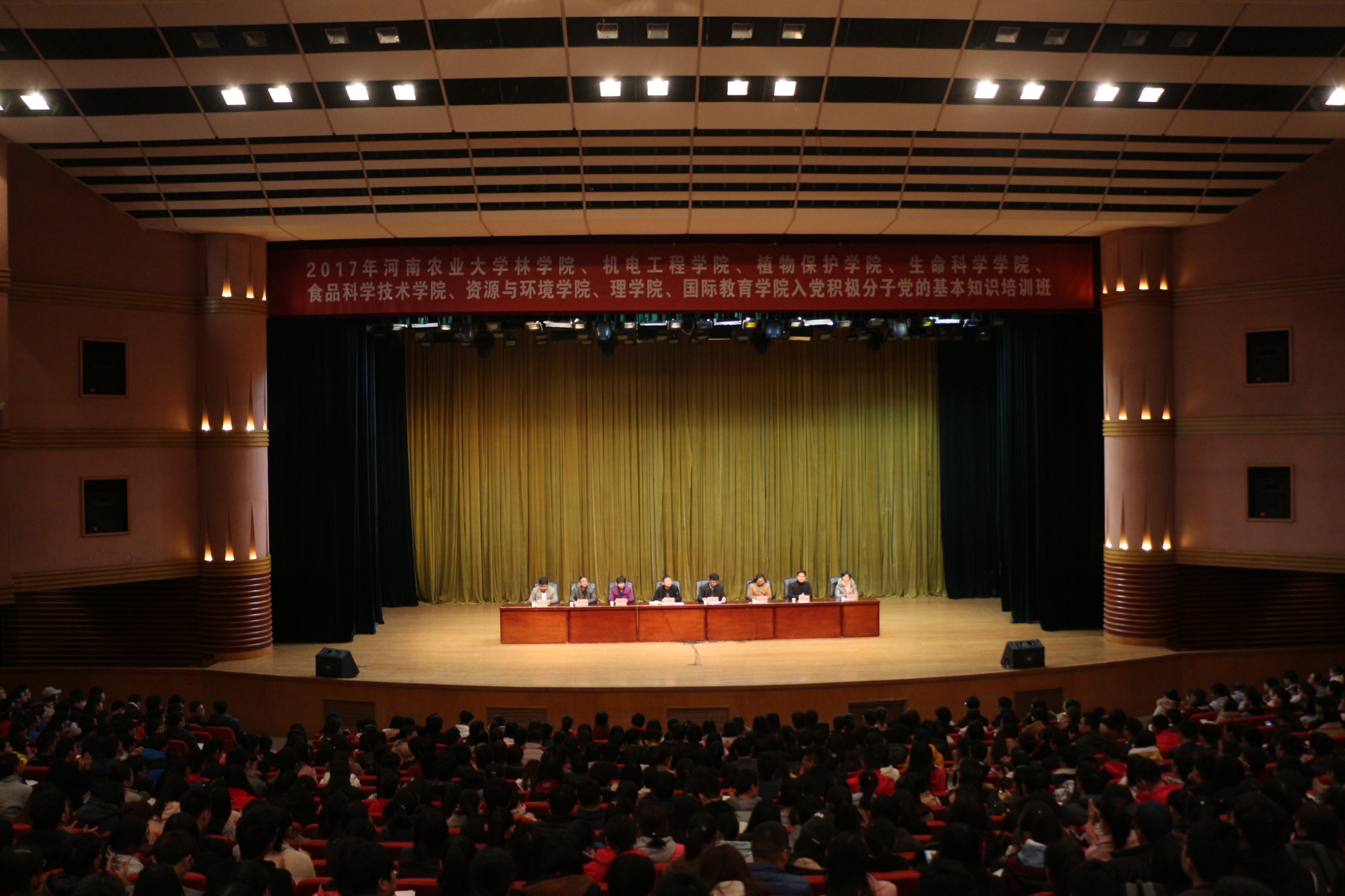 联合机电工程学院、植物保护学院、生命科学学院、食品科学技术学院、资源与环境学院、理学院、国际教育学院在校大礼堂成功举办2017年入党积极分子学习党的十九大精神培训班开班典礼。校党委组织部副部长、党校专职副校长余磊、av直播
