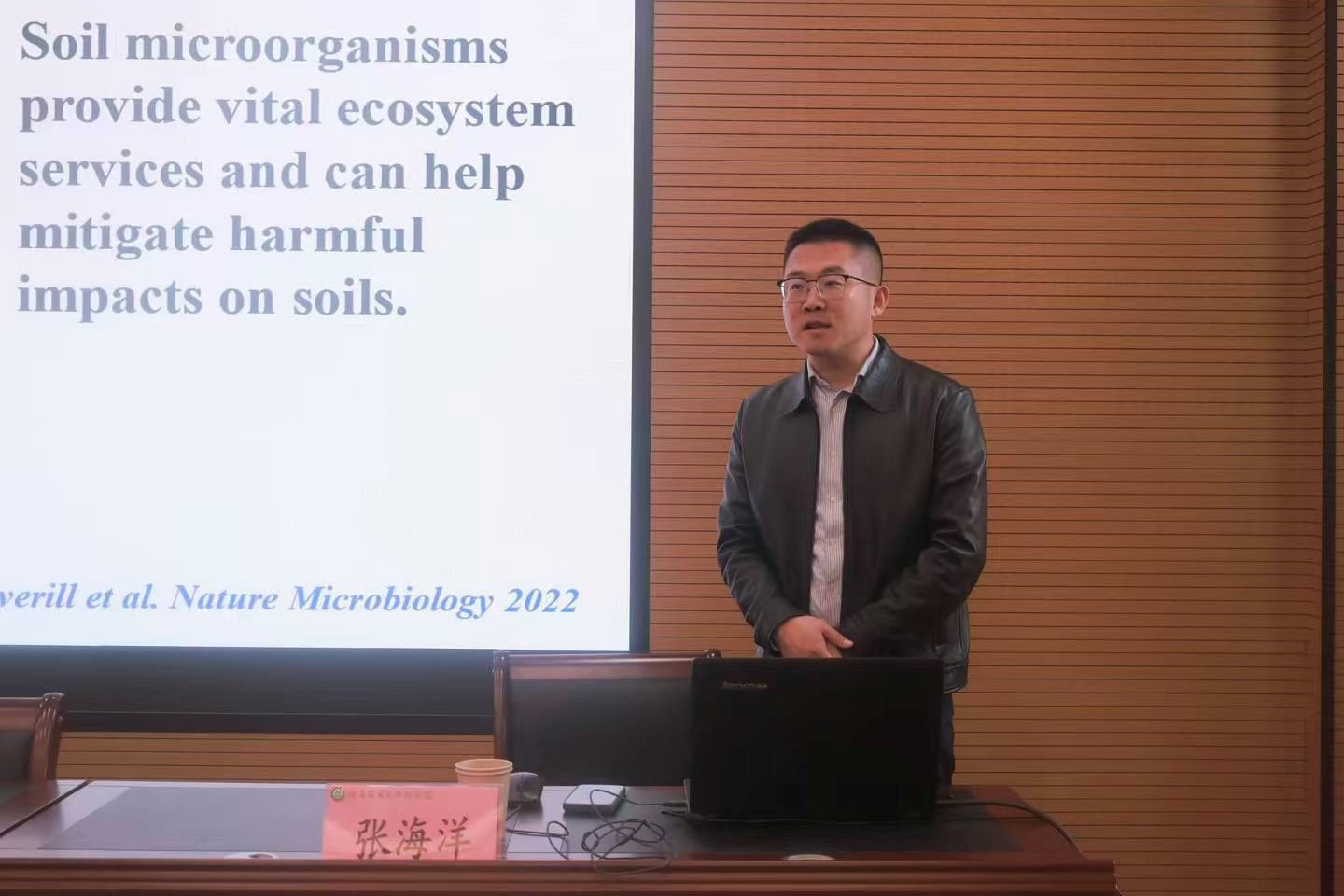 张海洋以《丛枝菌根真菌功能性状与菌丝际微生物》为题,结合自身长期从事生态系统养分循环研究的深厚积累,围绕以微生物功能性状为核心的植物与微生物的互作机制展开讲解。他从碳-氮-磷-钾为切入点,详细阐释了菌丝体碳氮磷钾等关键元素的化学性状特征,深入介绍真菌基因组特征,系统梳理相关研究基础与前沿进展。在此基础上,张海洋教授将研究视角拓展至基于特征的框架,构建起完整的研究逻辑与分析体系,结合学科发展前沿,明确未来研究方向,为在场师生在菌根生态与森林土壤微生物领域的研究提供了明确的思路框架与方向引领。