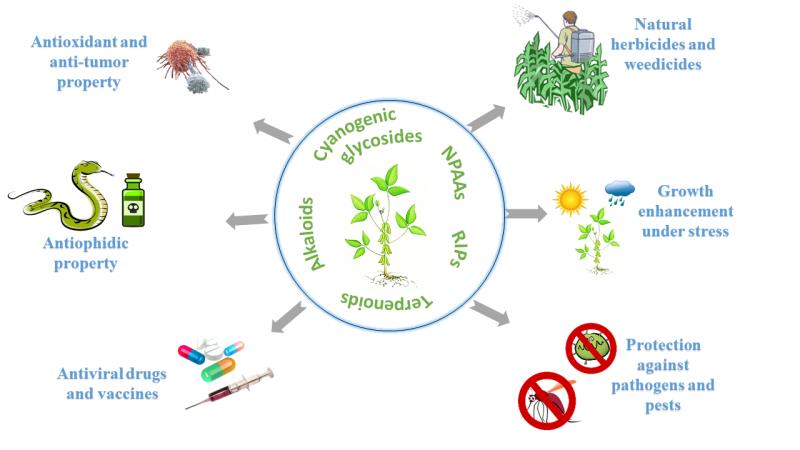 植物毒素是植物或植物病原菌通过自然发生的生化反应合成的有毒物质。植物利用它们作为防御剂抵御天敌(害虫、昆虫等)和疾病。这些物质通常作为次级代谢物产生,并在其性质(例如毒性模式、结构和化学成分)方面表现出高度的多样性。根据其结构和生物合成途径,植物毒素可以分为核糖体失活蛋白、非蛋白质氨基酸、生物碱、萜类或产氰苷类,从整体的角度来识别植物毒素和微生物的来源。还讨论了植物毒素在农业(除草剂和生物杀虫剂的开发)、植物对生物和非生物胁迫的保护、保健(抗氧化、抗炎和抗毒液特性)、药理学(临床毒理学评估)和生物医学(药物和疫苗的开发)等方面的应用。简而言之,植物毒素在许多应用中都是有益的。未来,对于植物毒素的研究应侧重于识别和利用植物毒素促进作物生长和环境保护。